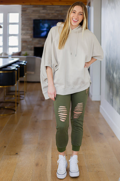 Slip into the Adore You Oversized Hoodie for an instant mood change! This comfy hoodie features a cotton-blend terry knit that shapes a hooded neckline with a functional drawstring topping an oversized bodice. Dolman sleeves end at elbow length with a ribbed cuff detail.