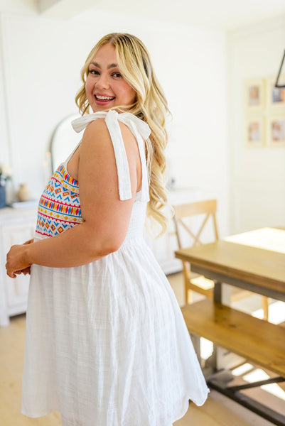 Ain’t She Sweet Embroidered Babydoll Dress is the perfect combination of feminine details and modern style! With a babydoll silhouette, tie detail straps, and smocked back bodice, it's the perfect balance of comfort and style. The textured woven fabric and fully lined structure mean you can rock this look with confidence and ease. So, who's ready to make an entrance?