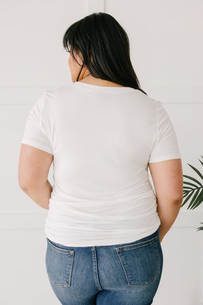 This lightweight top is the perfect piece to wear all season long! It features short sleeves and a v-neckline that is lined by the sweetest lace details. Dress it up by pairing it with a slitted floral skirt or go casual with a pair of biker shorts or jeans.