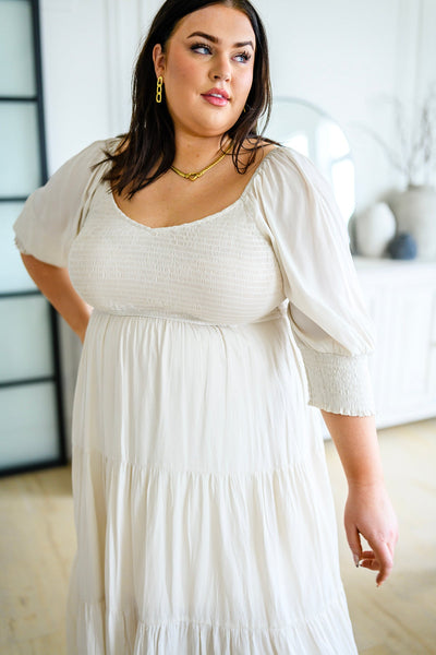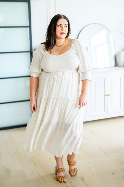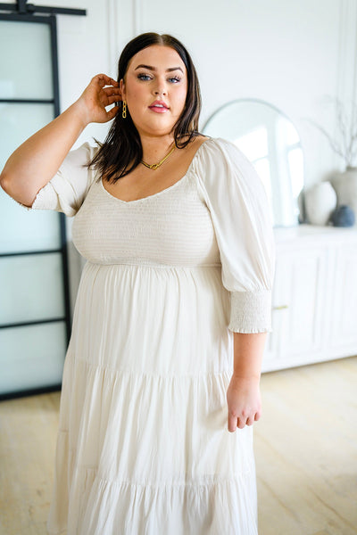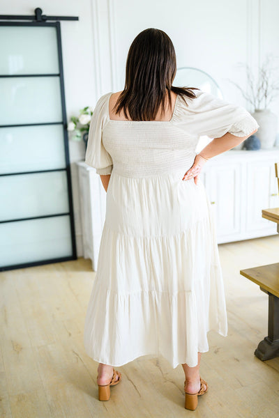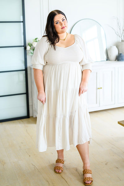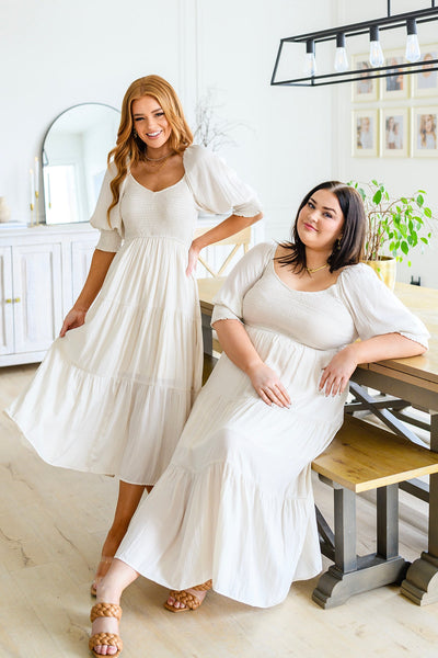 Look and feel beautiful in the Bellisima Tiered Midi Dress! A smocked bodice is accentuated by puff sleeves and a sweetheart neckline, while its tiered skirt is crafted with a lush, silky woven material that falls gracefully to a midi length. Enjoy effortless elegance in this stunning dress!