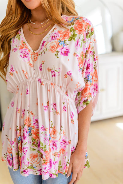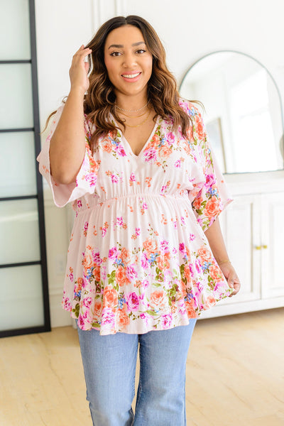 Enliven your style with the vibrant Bouquet a Day Floral Peplum Top! Crafted from luxurious lightweight knit fabric, this half-sleeve design features a v-neckline, stunning floral print, and flattering peplum skirt for effortless elegance. Don't wait 'til tomorrow - treat yourself today, and rock this floral beauty!