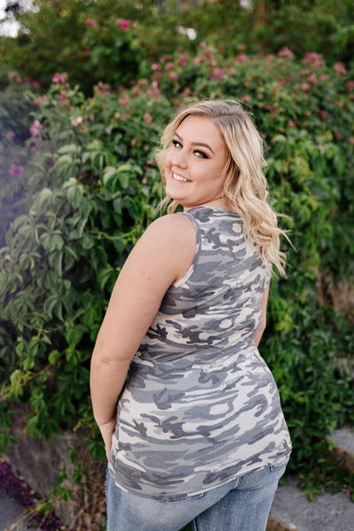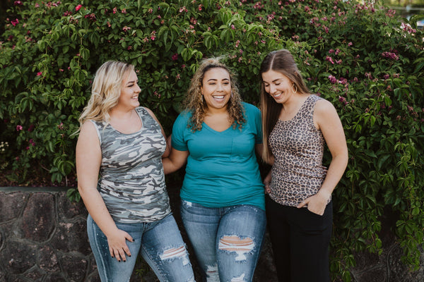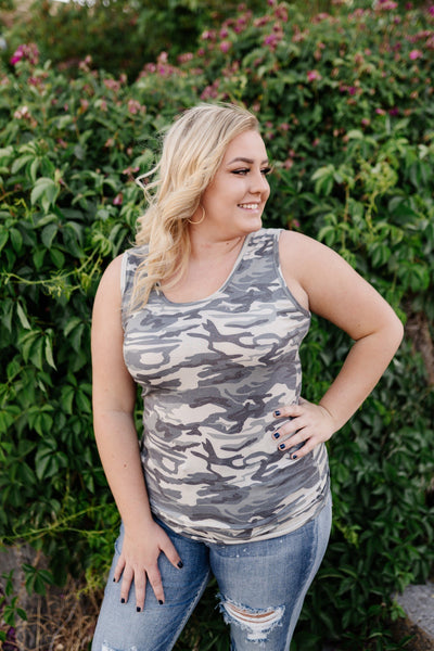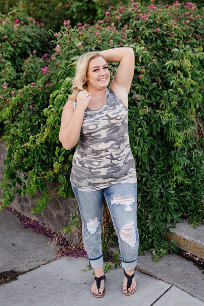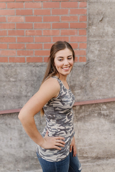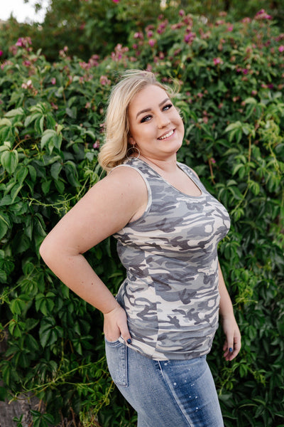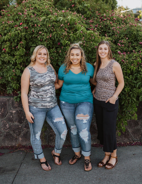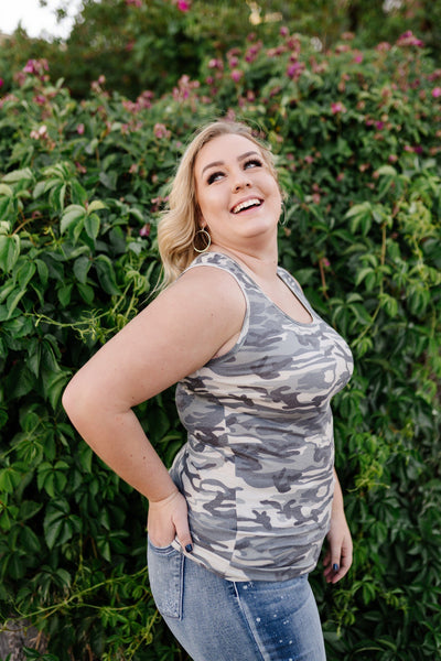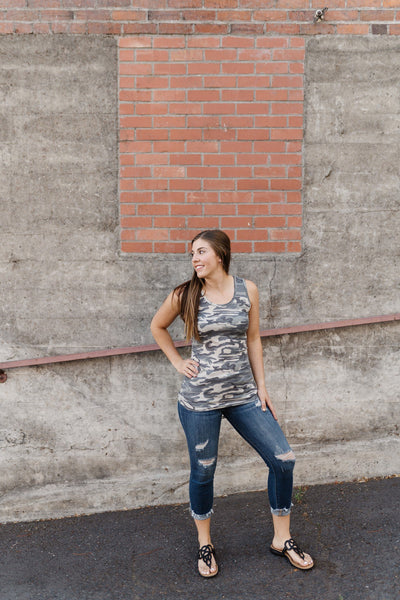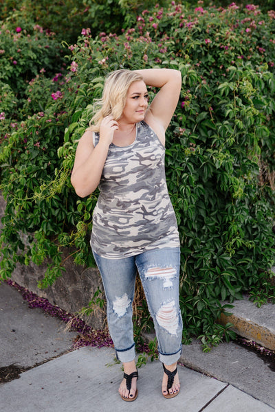 Incredible comfort and fun camo make the perfect combination is this cute little tank. We loved the stretch and the length is just right. Pair it with our Bleach Splashed Judy Blues or any wash of JB's, this top can do it all.