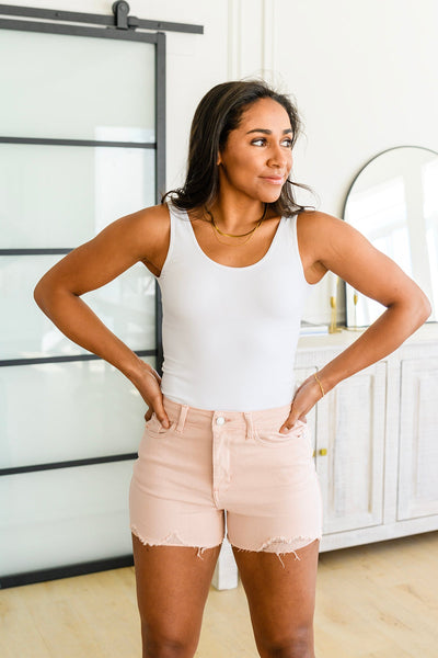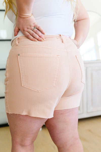 Discover the perfect combination of cool and comfortable with Brittany Mid Rise Cut Off Shorts from Judy Blue! Crafted with a classic mid rise fit, 4-way stretch denim, and garment dyed in a gorgeous blush color, these shorts offer you both style and ease. The zip fly closure and raw hem complete the look, creating shorts that you'll love to show off but never want to take off.