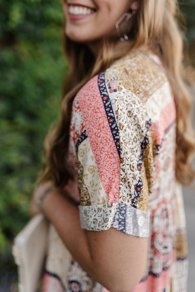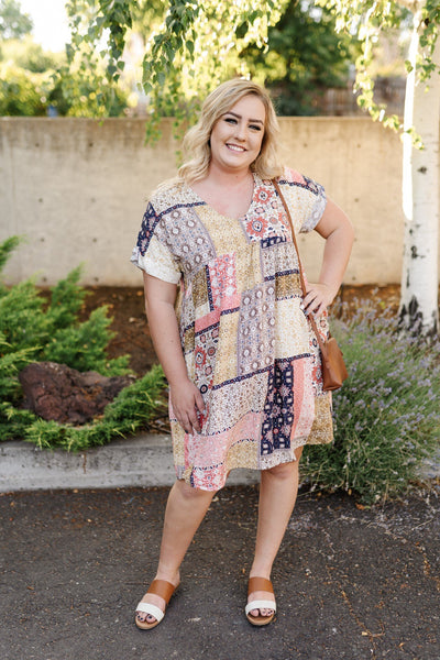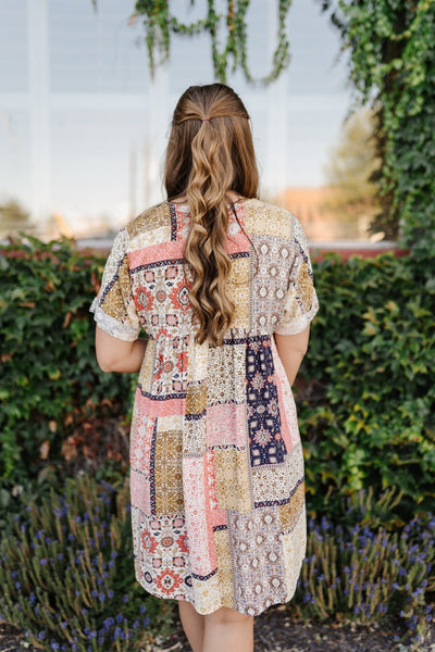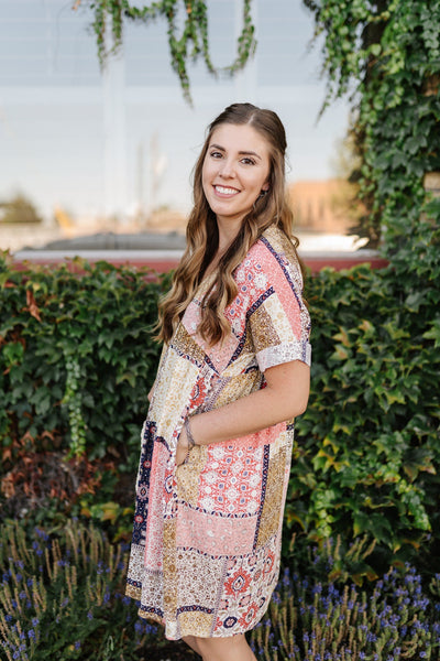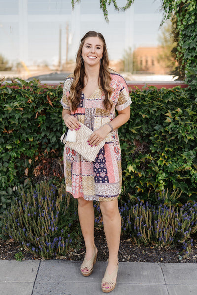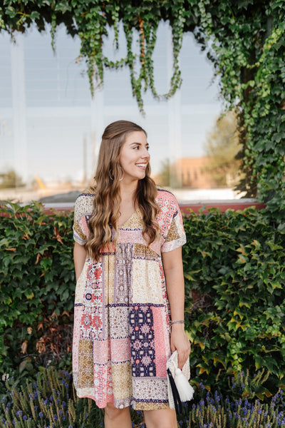 This dress is an absolute dream. We love the patchwork design on the fabric and love even more how breathable and cool it is to wear. 10 out 10 my friends, grab this one and wear it into fall with some cute leggings and boots!