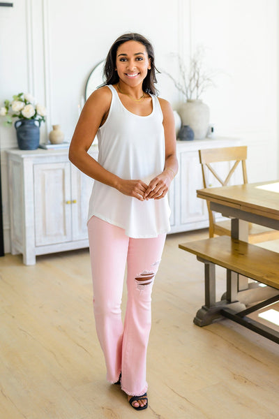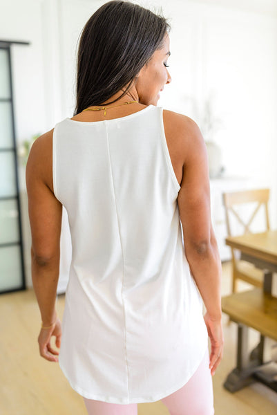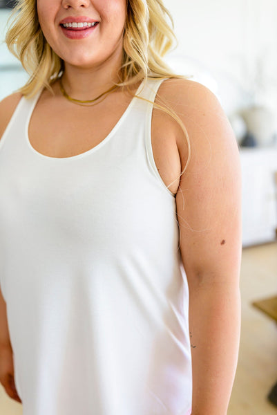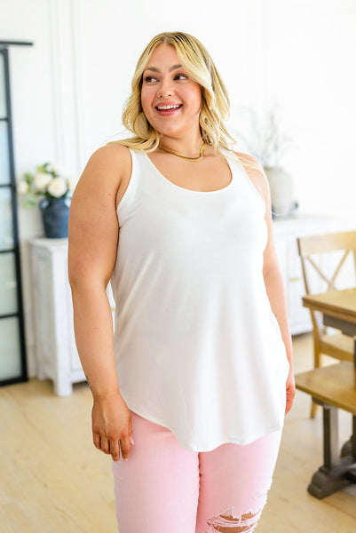 The Can't Get Enough Top in White is going to brighten up all of your fits! Featuring a stretchy, lightweight fabric, this tank will keep you comfy all day long. A sleeveless cut falls into a round neckline topping a relaxed fit bodice and a double rounded hem.