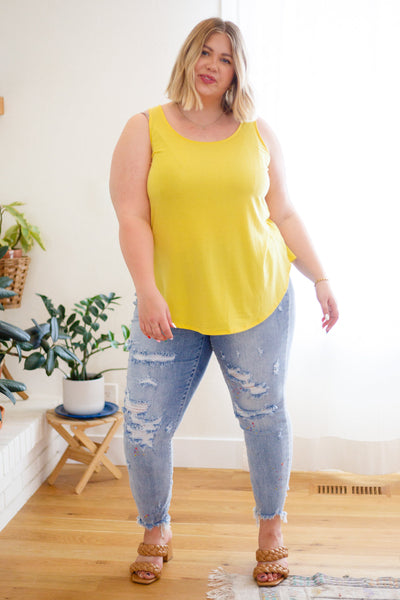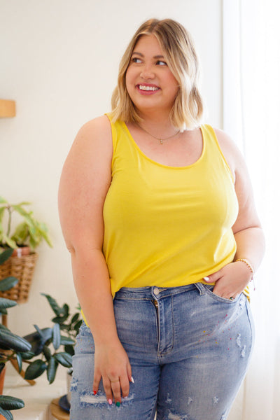 The Can't Get Enough Top In Yellow is going to brighten up all of your fits! Featuring a stretchy, lightweight fabric,  this tank will keep you comfy all day long. A sleeveless cut falls into a round neckline topping a relaxed fit bodice and a double rounded hem.