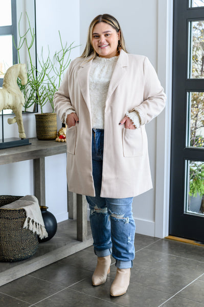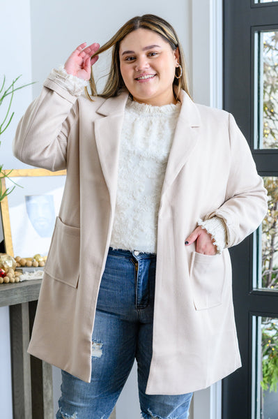 The Can't Miss Out Blazer In Beige is THE chic piece your closet is missing! Featuring a non stretch, brushed fabric that shapes this work-ready blazer with a collared neckline, notched lapels, and long sleeves with shoulder pads. The tailored silhouette features a darted bodice, two functional patch pockets, and an open front.