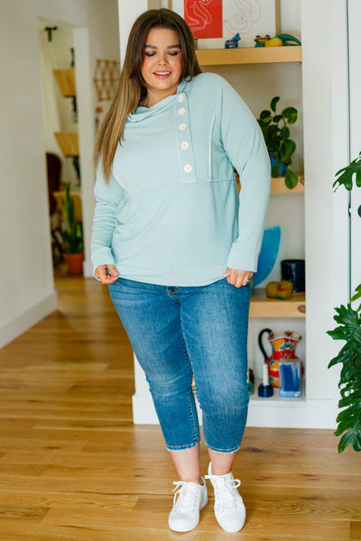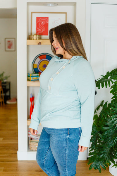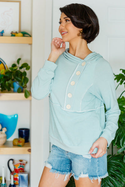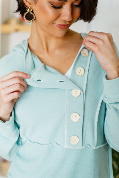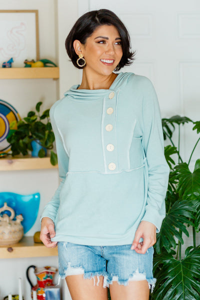 The best time to throw on the Capture The Day Side Button Hoodie is anytime! Lightweight french terry shapes a hooded neckline that falls into a three quarter button detail. Long sleeves frame the relaxed bodice with exposed seam detailing throughout.