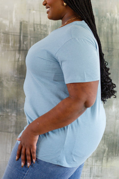 There's endless ways to style the Cardinal Short Sleeve Tee In Blue Grey, and that's why we love it so much! Featuring a lightweight, stretchy cotton that shapes a crew neckline, with short sleeves and a relaxed fit bodice. This tee will pair well under blazers, shackets, cardigans and more!