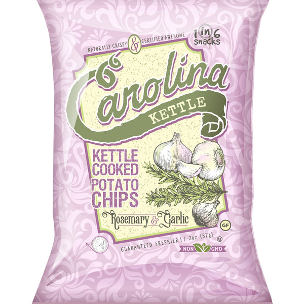 Rosemary Garlic-The natural gourmet flavor of fresh Rosemary with Garlic seasoning is a combination that is the perfect blend of flavor. These kettle chips have bold crunch and the perfect taste that you are sure to Love!