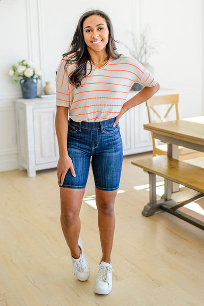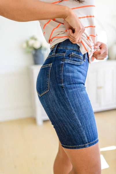 Look chic and feel comfortable in the Cassidy Denim Biker Shorts from Judy Blue! With 4-way stretch and an elastic waistband, these high-waisted shorts will fit perfectly and ensure you’re always ready to take on the day. The dark wash adds subtle sophistication, making you look and feel amazing no matter the occasion. Embrace a denim take on the biker shorts trend!