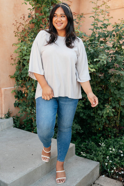 Keywords: Silver Top, Gray Top, Blouse, Long Sleeve Top