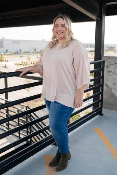 The Choir Of Angels Top is a beautiful soft pink colored blouse with pleated details at the shoulder. This top has a long, flowy silhouette and round neckline. Pair this with a skirt or dark skinny jeans for an elegant look.