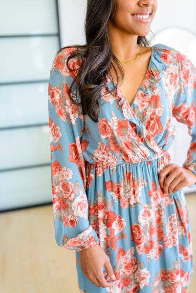 The Coming Up Roses Floral Dress is sure to be your spring go-to! With its gorgeous surplice wrapped front, ruffled v-neckline, and voluminous balloon sleeves, you'll be sure to turn heads. The elasticated waistband cinches you in for a flattering fit, and the feminine floral print will make you feel like you just stepped out of a summer dream!