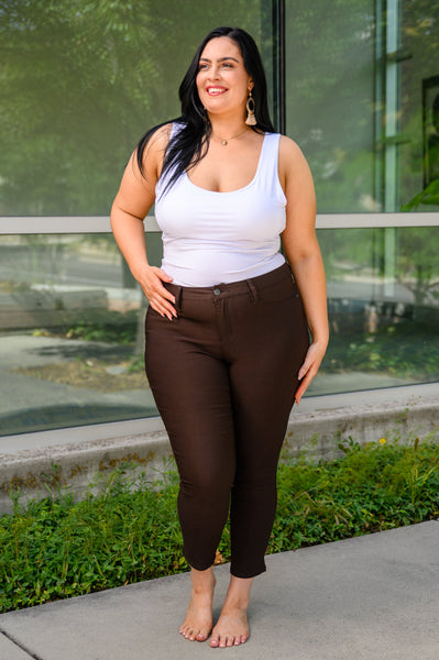 The Dakotah Hyperstretch Skinny Jeans were made to contour your body yet feel like you're wearing leggings! These sleek dark brown skinnies feature a specially constructed hyperstretch fabric that is ultra flattering and comfortable. With a high waist, faux front pockets, two back functional pockets, zipper fly and skinny silhouette you're bound to fall in love!