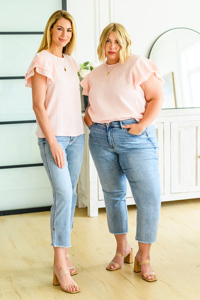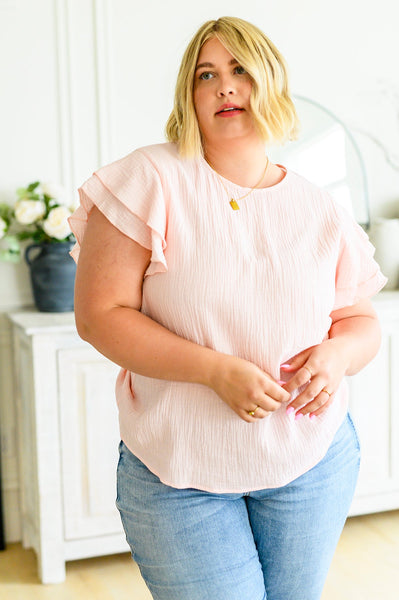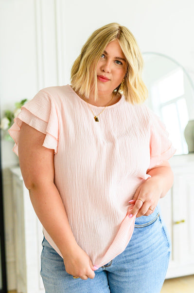 Make your dreams come true with this beautiful Dreams Come True Ruffle Sleeve Blouse! In a soothing soft color, this blouse features a round neckline, tiered ruffled sleeves, and soft crinkle cotton for a comfortable fit. With its delicate charm and timeless style, you won’t want to take it off!