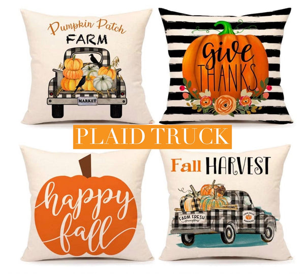 Easily change out your decor every season and holiday with decorative pillows! Simply unzip and change! Each set comes with 4 pillow cases, good for a standard 18"x18" fit!