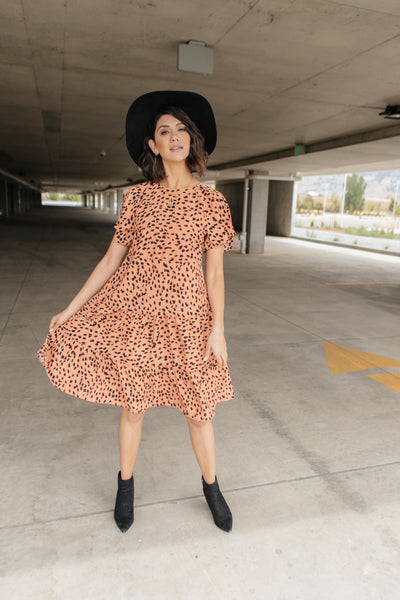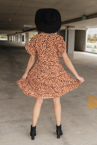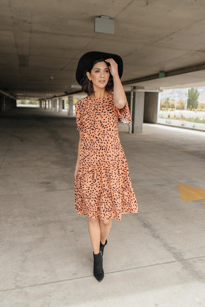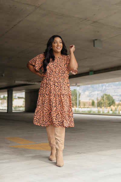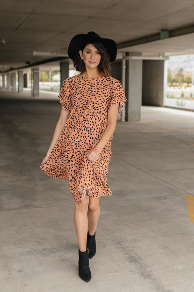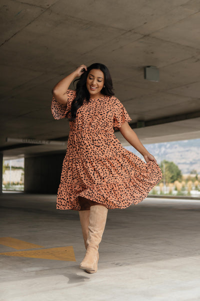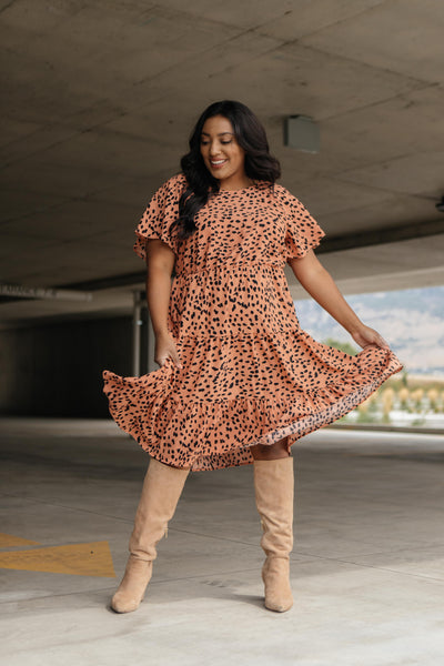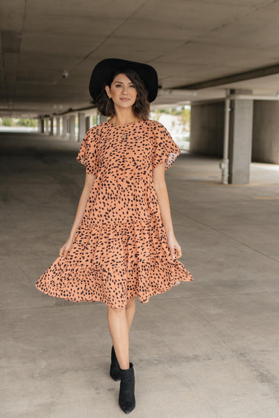 This simple dress is sophisticated and so classy! It's so flowy and twirlable. It just moves and sways as you do! It features a high-cut neckline, adorable flutter sleeves, and a lovely tiered skirt. You'll adore this piece!