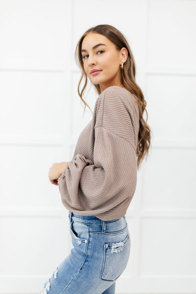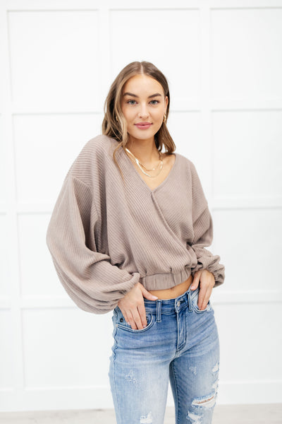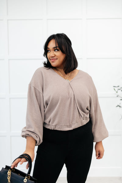Keywords: Brown Top, Sweater, Taupe, Crop Top, Long Sleeve