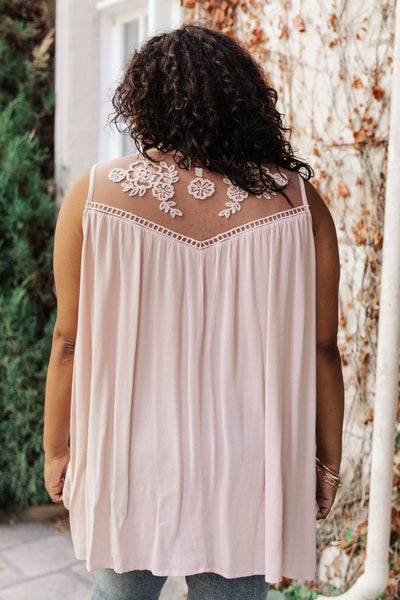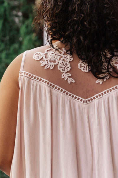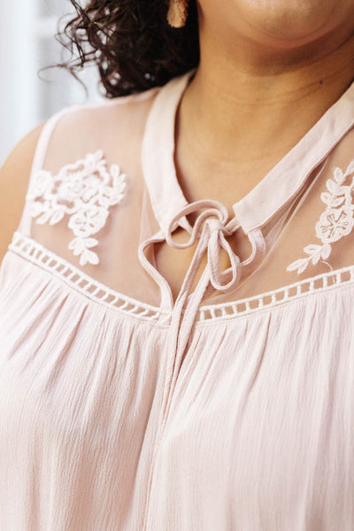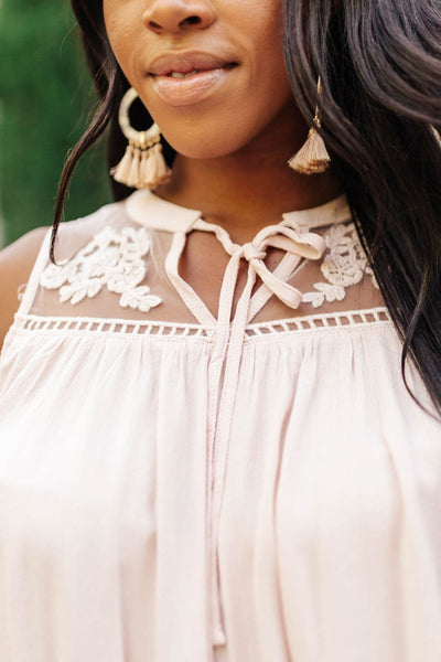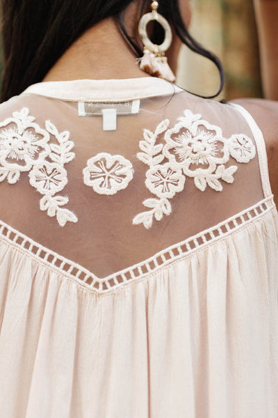 We love the Floral Embroidered Swing Top and you will, too! The top of this blouse is a sheer mesh material with beautiful embroidered flowers. The collar and tie add another fun detail to this flowy boho top. Pair it with slim fit jeans or a pair of shorts.