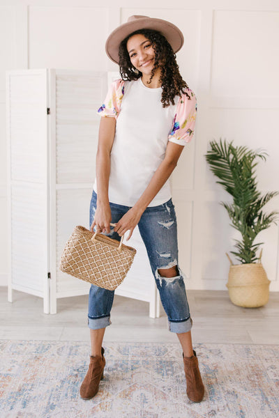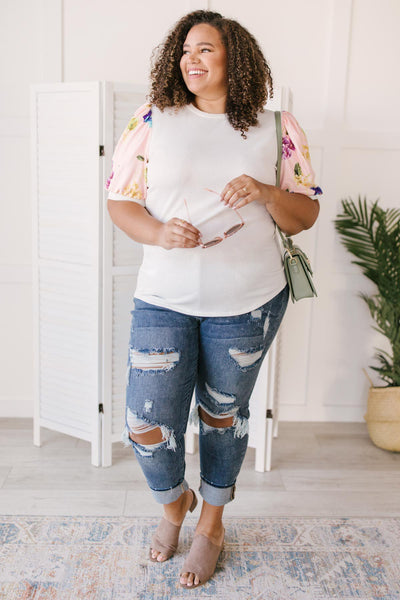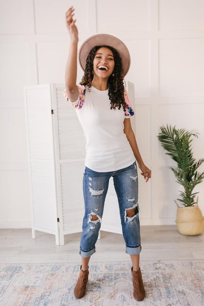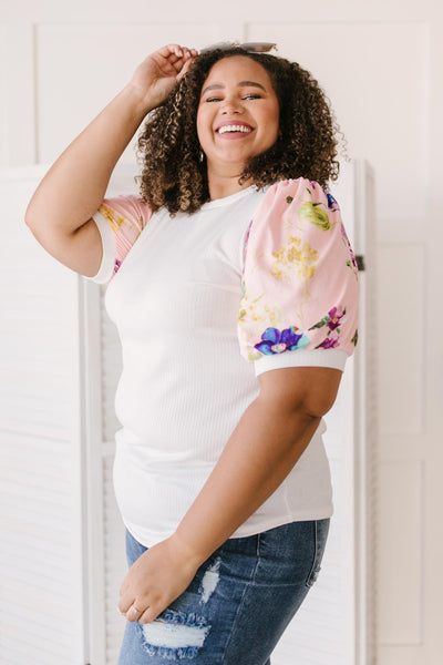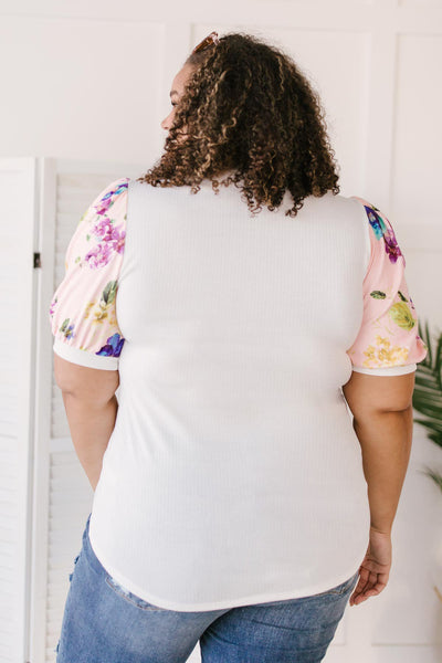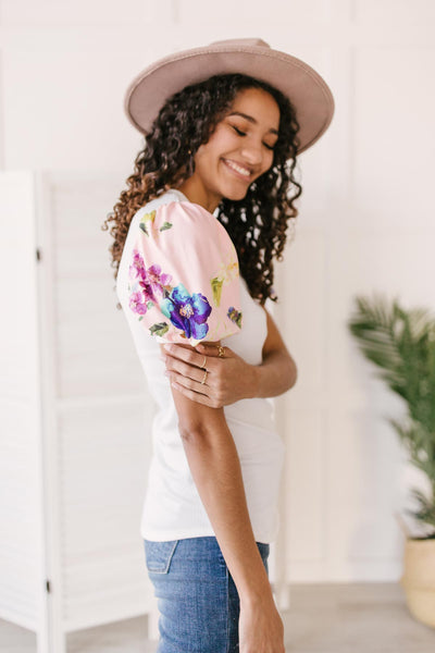 We cannot stress enough how badly you need this top. With its beautiful ribbed bodice and botanical sleeve, it's both colorful and feminine. It is so uniquely gorgeous you'll love this piece to amp up your tee shirt collection.