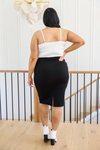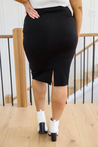 You and the Forever N' Ever Pencil Skirt In Black are a perfect match! This essential skirt features a thick high waistband that tops a body hugging silhouette that ends at knee length. Truly a timeless piece that you can wear for years on end!