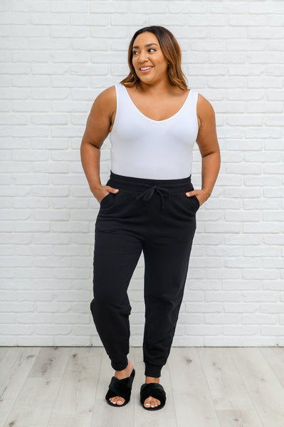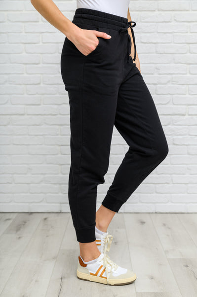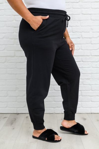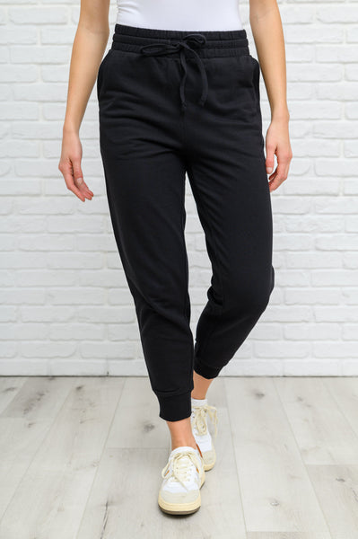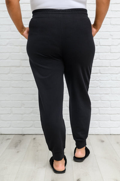 Medium weight french terry joggers with an elastic waistband, functional drawstring, and side pockets. Tapered leg, loose fit.