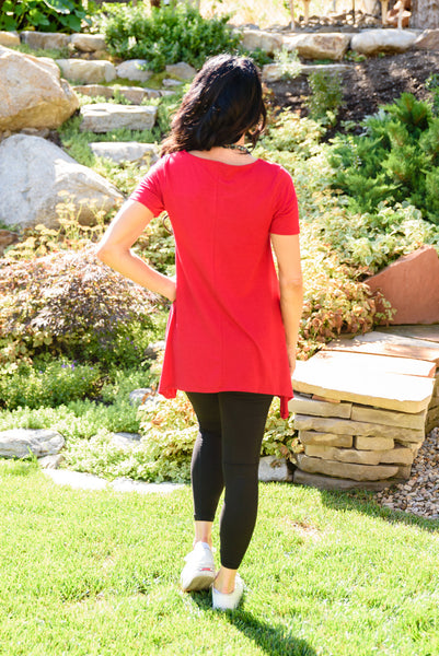 Keywords: T-shirt, Red, Top, A-line, Comfortable