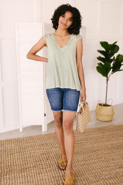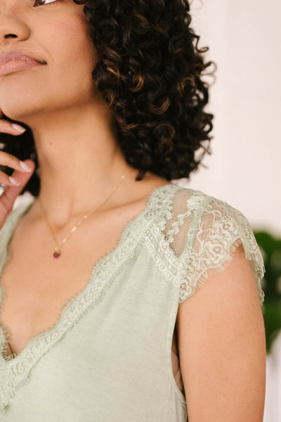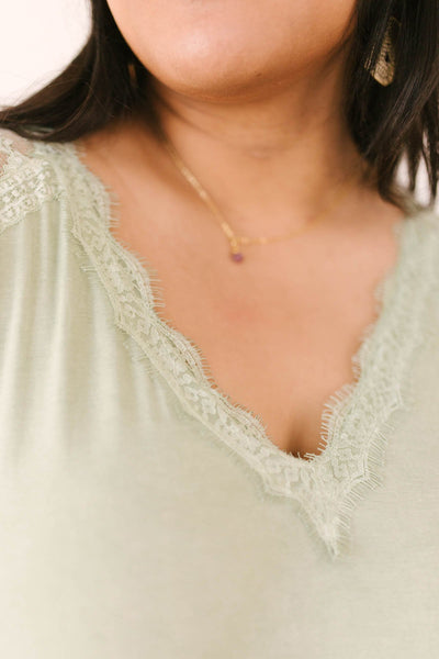 Give me all the lace this Spring! This top feels like a pajama top while looking like one of the most expensive tops you own. Featuring a v-neckline lined with lace to show off your favorite necklace and lace sleeves; this piece is as gorgeous as it gets.
