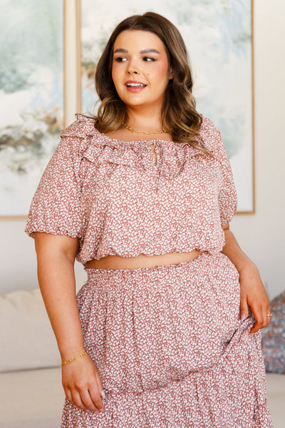 Head to date night in style in the Golden Hour Top! This cute top has all the details that we absolutely love. Featuring a ruffled elasticated neckline, keyhole detail on the front, balloon sleeves with elastic cuffs, and elastic waist. Not to mention it's in the most adorable tiny floral print! Pair with denim, nude sandals, and matching bag for an on trend look!