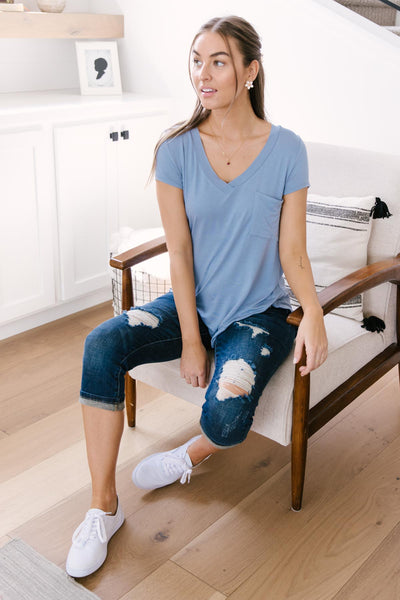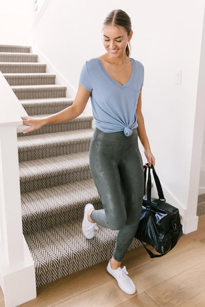 We are in love with this pocket tee and know you will be too. Its material is to-die-for soft and breathable; perfect for absolutely anything you need to tackle during the day. Wear it with your favorite jeans, shorts, or your favorite leggings as it’s a perfect workout/lounge top too.