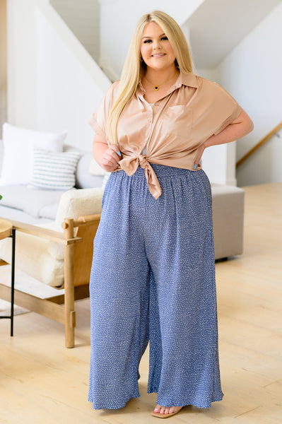 Get ready to make a statement with these Harmony High Rise Wide Leg Pants! Boasting a smocked waistband, textured fabric, and a dramatic wide leg, these iconic pants will make you stand out wherever you go. With a subtle polka dot print, you'll add a touch of glamour to any look.