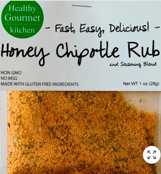 Honey Chipotle Rub- Honey Chipotle Rub is one of our most popular rubs. The chipotle delivers a little bit of heat and the honey delivers the sweet, for a not too sweet not too hot rub. Terrific on salmon, chicken, pork, pretty much everything including fruit and vegetables.