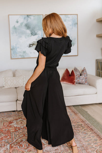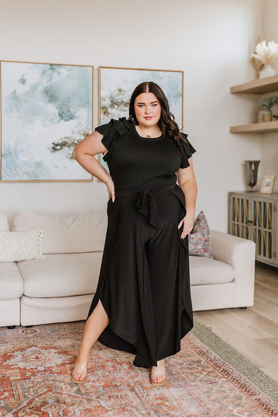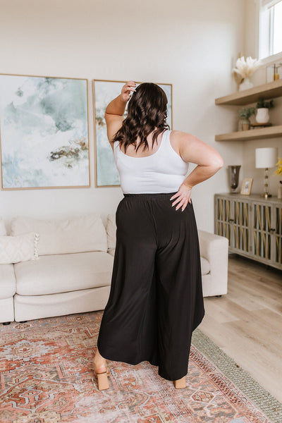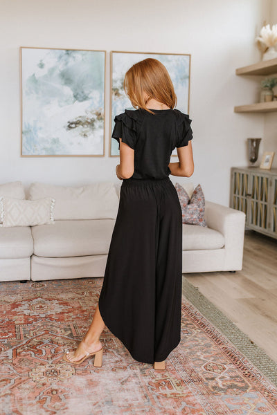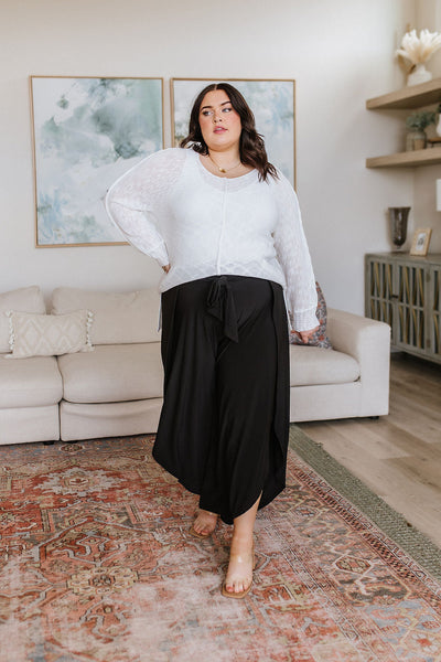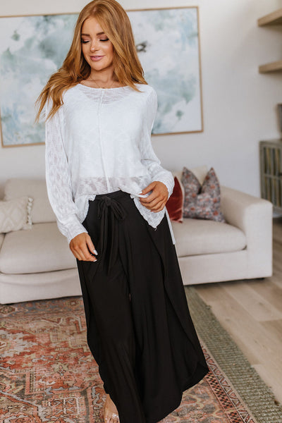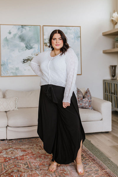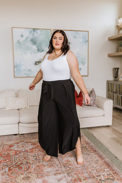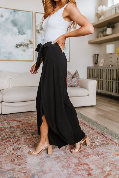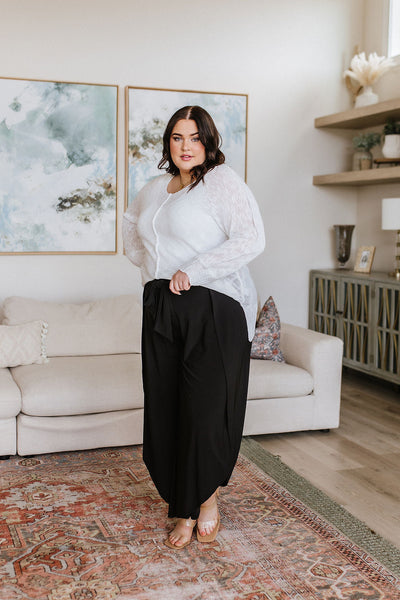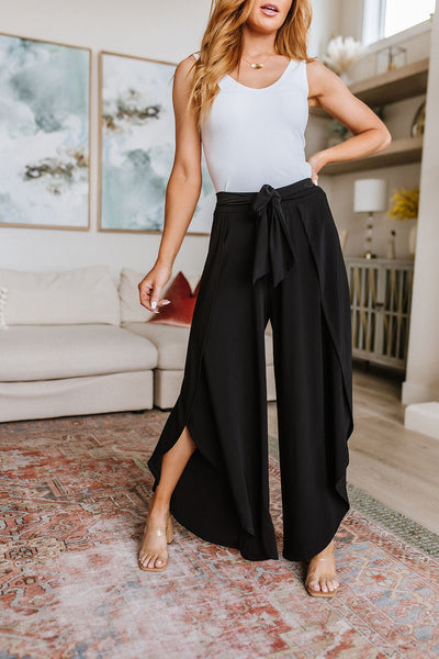 Look sophisticated and stay comfy in our Holland Holiday Tulip Pants. Made with bulgari fabric, they drape gracefully with self-tie detail and a romantic tulip hem – in a timeless black that goes with any and every look.