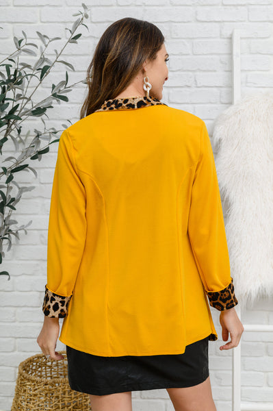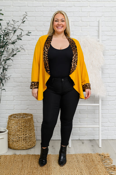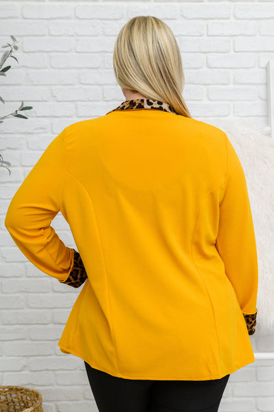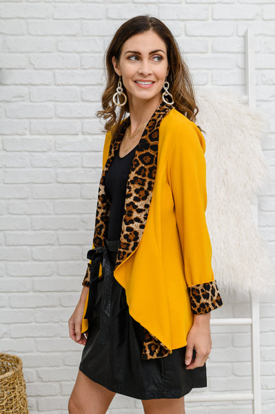 The I Have A Dream Animal Print Blazer In Mustard is all about style, attitude, and business! This chic blazer is composed of a lightweight, stretchy fabric that shapes an open front with a draped hem and a contrasting animal print that lines the inside, peeking over the collar and sleeve cuffs.