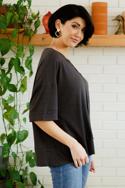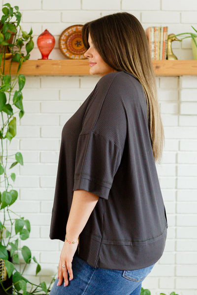 Keywords: Ribbed, Dolman Sleeve, Short Sleeve, Gray, T Shirt