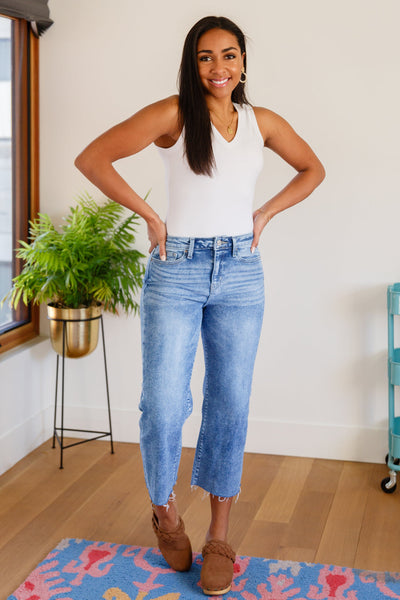 Keywords: Bodysuit, White, V-Neckline, Tank Top