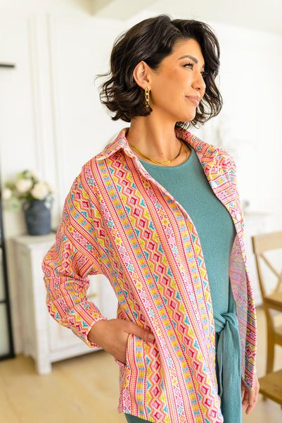 Put a geometric spin on your casual wardrobe with our Imagine When Corduroy Button Down shirt. This wearable work of art is made of stretchy corduroy fabric, so you can step out in comfort, and features a gorgeous striped pattern that'll make 'em gasp! With a button front and handy side pockets, you won't want to take it off! Let's see what you can imagine when you wear it!