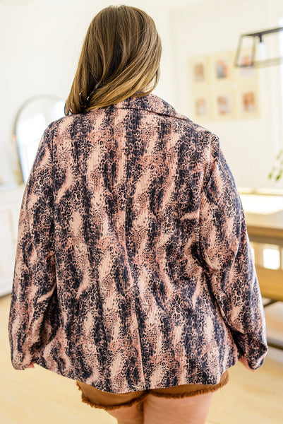 Make an impression in the Impress Me Much Animal Print Blazer! This striking corduroy blazer, with a single button closure and notched lapel, adds a bold animal print to your look. Soft and stretchy, it's perfect for any occasion, and the pockets give you added utility. Elevate your style today!