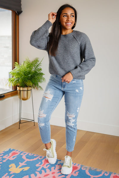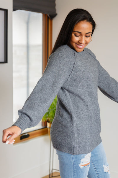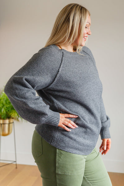The In Depth Crewneck Sweater in Charcoal is a sophisticated addition to any wardrobe. Its medium weight, stretchy fabric and relaxed fit bodice provide comfort, while ribbed cuffs, hem and neckline, balloon sleeves, and exposed seam detail add style. Perfect for elevating everyday outfits or dressing up for a night out.