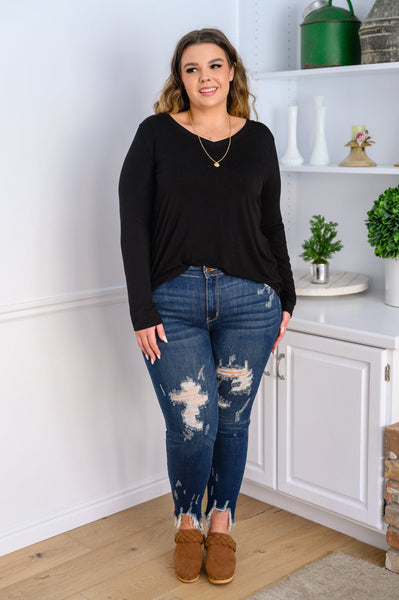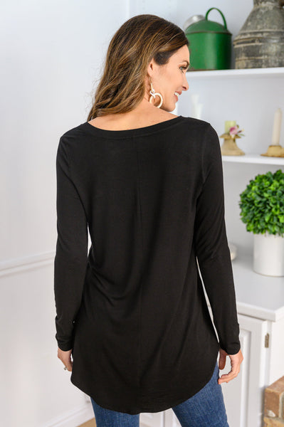 Adding timeless pieces like the It's Your Move V-Neck Long Sleeve Top In Black to your wardrobe makes getting dressed in the mornings a breeze! This perfect basic features a lightweight, stretchy fabric that shapes a v-neckline with long sleeves and a loose fit bodice with a rounded hem. Pair this tee with leggings, a cozy jacket and combat boots or tuck into trousers and layer with a blazer! Versatile and timeless, this staple top is a must-have!
