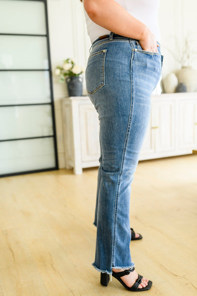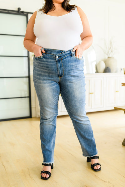 The Joey Crossover Straight Leg Dad Jeans offer a modern twist on classic denim. Featuring a high-rise, cross-over waistband, and relaxed dad jean silhouette, these jeans provide a comfortable fit with a fashionable flair. Their medium wash has no distressing for a timeless look, and the raw hemline adds the perfect amount of edge!