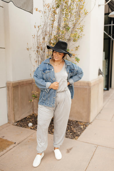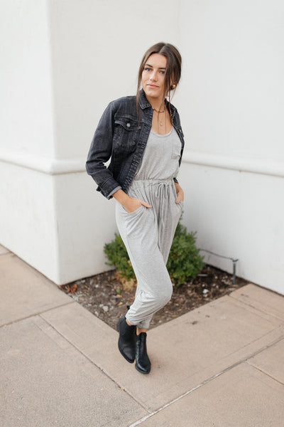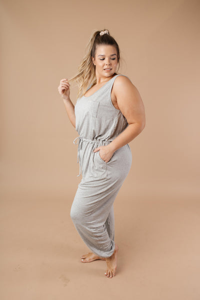 Every lady needs a power jumpsuit! It'll change your whole life. This piece is effortlessly trendy, and will take you from day to night with ease! It's sleeveless which is perfect for layering and pairing to your heart's content! It also features an elastic waist with an adjustable tie, pockets, and a jogger style hem!