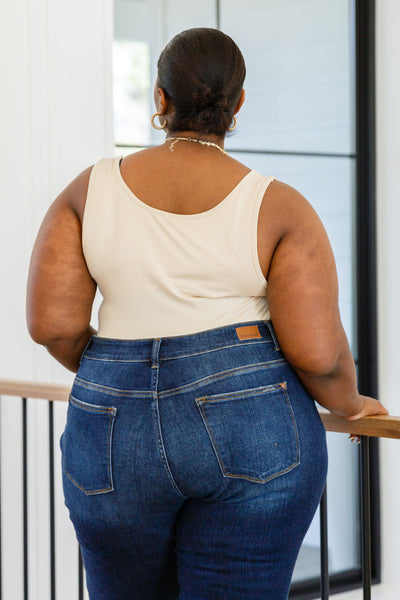 We know there's room in your closet for the Keep Me Around Bodysuit In Beige! This amazing wardrobe essential features a stretchy, lightweight fabric that shapes a scoop neckline with a built in padded bust, that drops into a fitted bodice with a snap closure. This is perfect for layering under your favorite shacket and jeans!