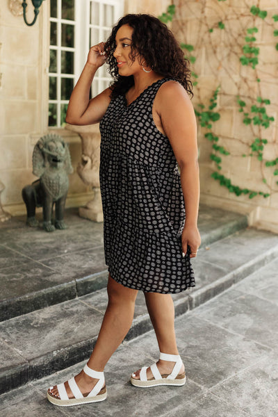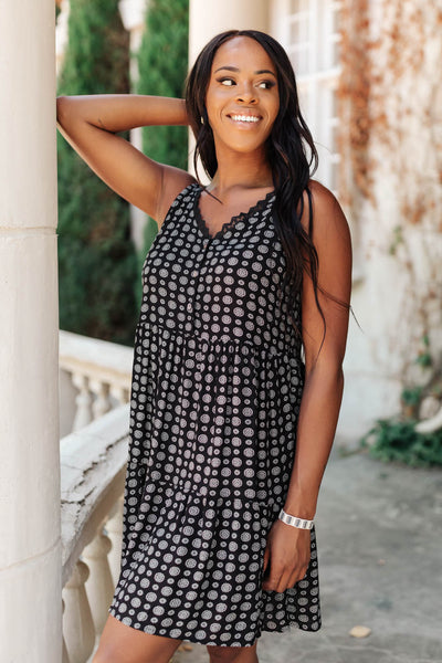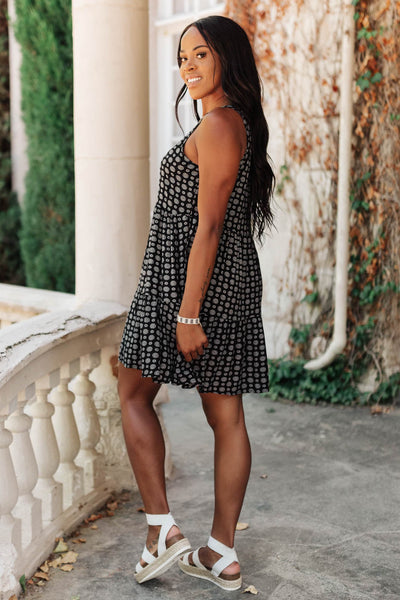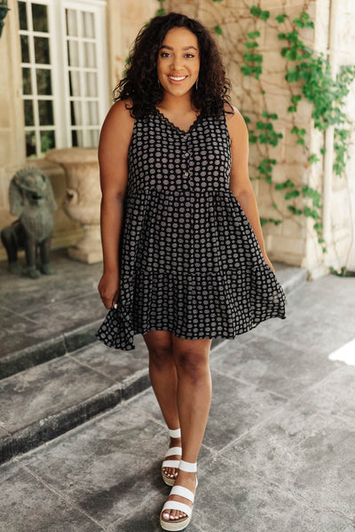 The Later Days Dress is the perfect throw on and go outfit. A tiered skirt and cute button details create a cute twist on a classic silhouette. This breathable flowy dress is perfect for those warm summer days.