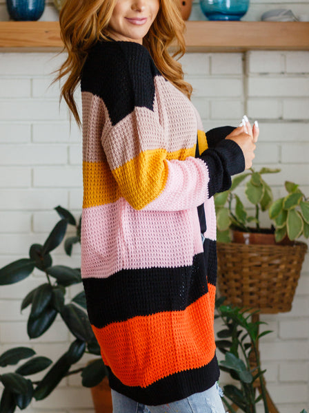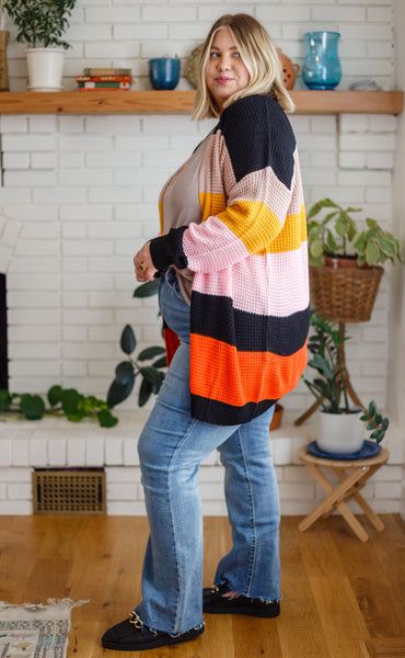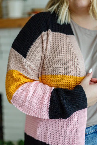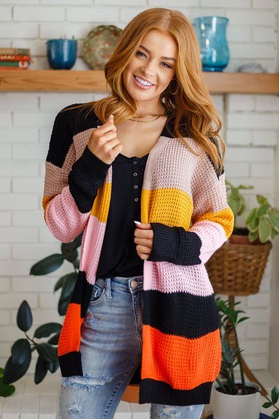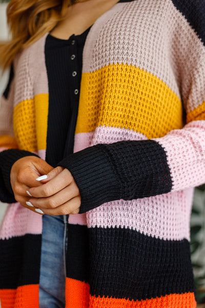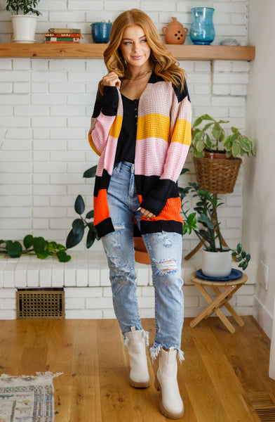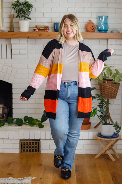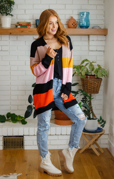 We aren't going to let another day go by without the Let Today Be A Good Day Striped Cardigan in our closet! A stretchy waffle knit fabric shapes an open front with long sleeves and a loose fit body. The cutest colorblock design makes this cardi an instant statement piece!