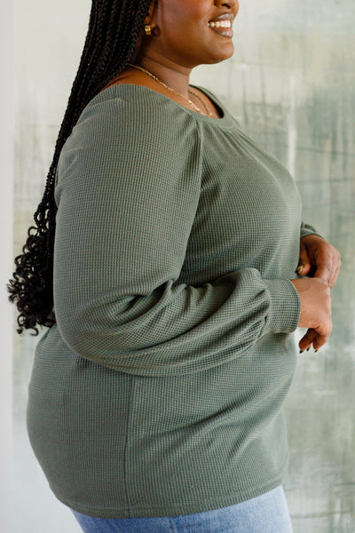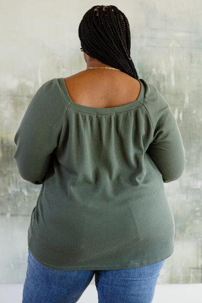 Keywords: Waffle, Knit, Olive Green, Long Sleeve
