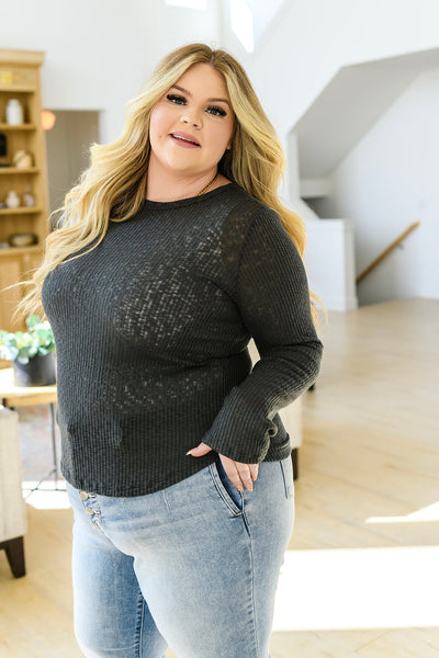 Little Talks Ribbed Long Sleeve Top in Charcoal