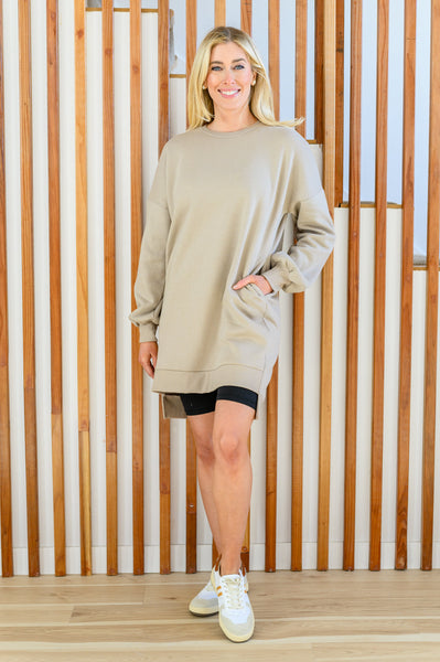Lounge in style with the Lounge With My Love Long Sweatshirt! This cozy piece features a cotton/poly blend that shapes a round neckline with drop shoulder long sleeves and a loose fit bodice that ends at a hi-low hem. Perfect to pair with biker shorts, sneakers, and your favorite belt bag!
