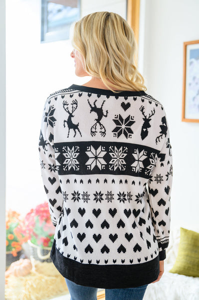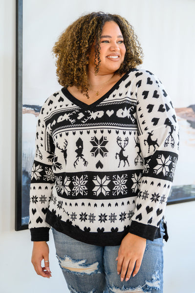 The Love And The Holidays V-Neck Top is essential for your holiday wardrobe! This cute sweater features a lightweight, stretchy knit that shapes a v-neckline, with drop shoulder long sleeves and a straight cut-loose fit bodice. The adorable holiday heart print will put you in the Christmas spirit!
